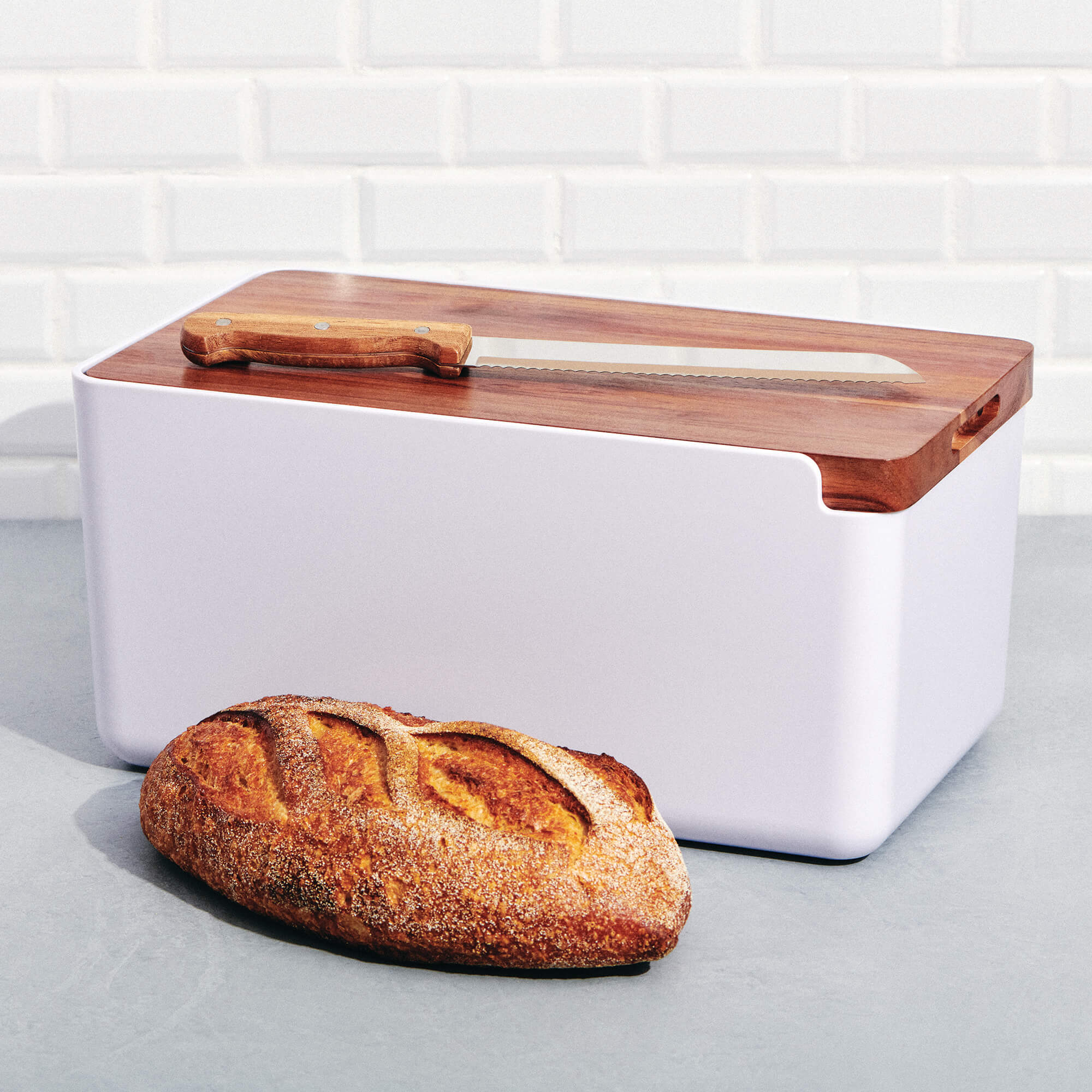 There’s never a stale moment in the kitchen when Hudson’s around. Blending neutral tones and natural wood, our ever-trendy Hudson collection always delivers a sliver of style. In the market for a bread bin that makes a big statement? Our Bread Bin With Wooden Cutting Board will be that rebellious partner-in-crime you’ve always wanted to bring home to meet the parents.