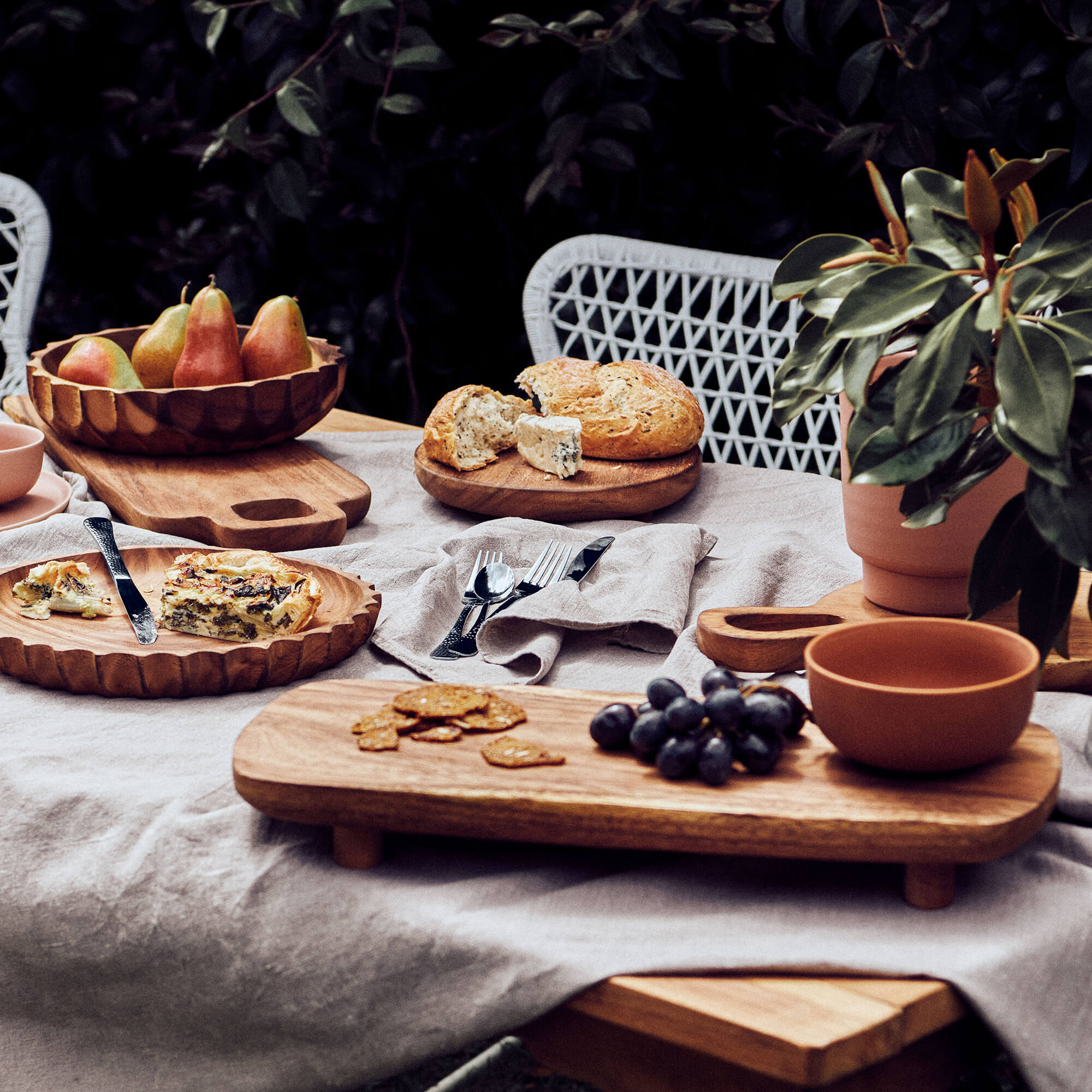 Do you like to impress friends with an amazing grazing table? Or enjoy serving up your culinary works of art on something special? Our Linden serveware is for you. The organic forms are carved from natural mango wood, resulting in rich grain patterns so that each piece naturally unique from the next. The wooden collection will add style and flare without taking away from your amazing creations. Complete your table setting (and show off just a little) with our Linden serveware collection.