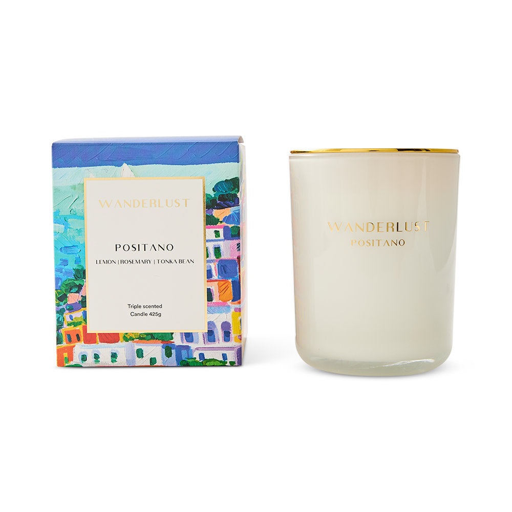 The soul of the Amalfi coast, Positano evokes the feel of handmade sandals and indigo waters over the unique blend of lemon, rosemary and tonka bean. - Santorini